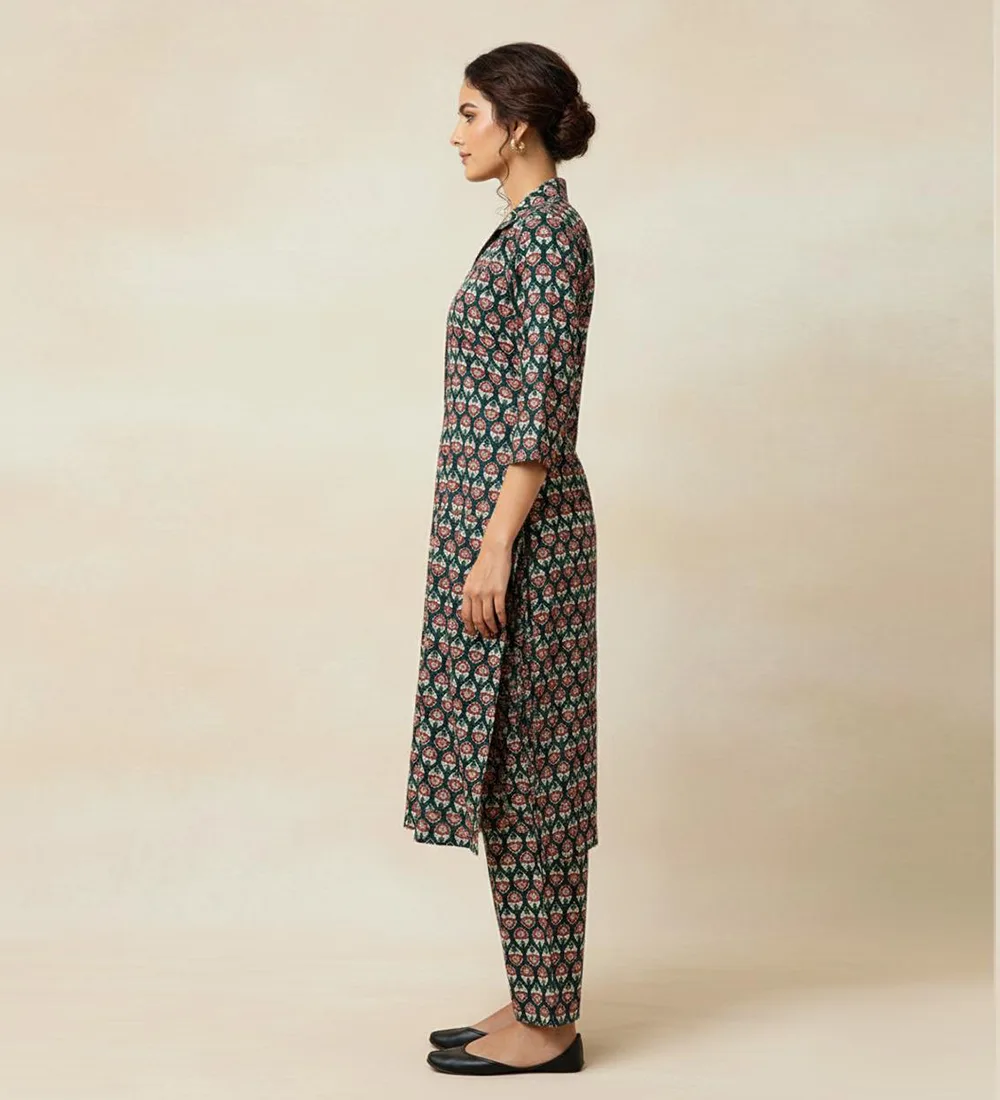 Rontyali Blockprint Handmade Co-Ord Set (Top + Pant) – Multicolor