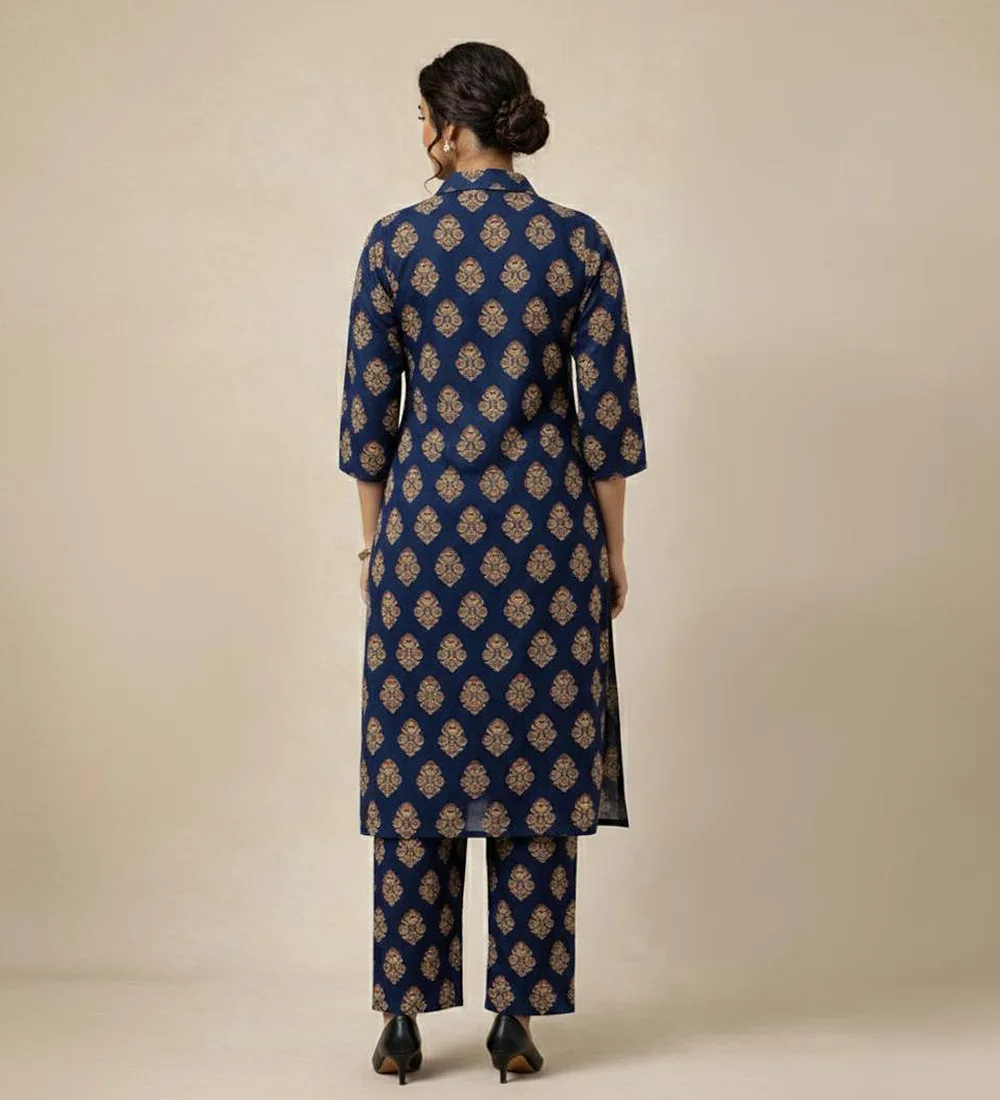 Rontyali Blockprint Handmade Co-Ord (Top Only) – Royal Blue